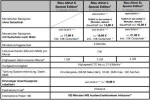 Es handelt sich dabei um einen Vertrag mit 6 Monaten Mindestvertragslaufzeit. Im Anschluss verlängert sich der Vertrag jeweils um weitere 3 Monate, wenn nicht mit einer Frist von einem Monat zum Ende der Laufzeit gekündigt wird. Damit ist der Vertrag zwar deutlich unflexibler als beispielsweise die früheren Tarifhaus Monatsverträge, dafür gibt es aber auch nach den 12 Monaten der Produkttester-Aktion weiterhin einen Shopping-Gutschein in Höhe von immerhin 10 Euro. Realisiert wird das Angebot über den Discounter Blau.