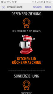 Das Bestandskundenprogramm mit Belohnungscharakter zielt dabei natürlich auf die Festigung der Kundenbindung ab. Jeder otelo-Kunde mit einem aktiven Postpaid-Vertrag kann dabei kostenlos an dem Bonusprogramm teilnehmen und vom Sofortgewinn in Form eines Gratis-Datenvolumens oder Rechnungsrabatts bis hin zu diversen Sachpreisen profitieren. Zu gewinnen gibt es unter anderem Gutscheine für Online-Shops, Kino oder Reisen sowie verschiedenste Sachpreise. Im Dezember beispielsweise wird als Hauptpreis unter dem Motto „Gewinn dein Ding“ eine Kitchenaid Küchenmaschine sowie ein Jahreslos der Fernsehlotterie in der Sonderziehung ausgelobt.