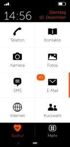 Die häufig benötigten Apps können auf Wunsch auf einem speziellen Kachelbildschirm abgelegt werden. Je nach Konfiguration lassen sich auch Funktionen Abschalten oder Hinzufügen. Dreh- und Angelpunkt bleibt immer der Startbildschirm mit allen benötigten Funktionen. Eine weitere Besonderheit ist der Notrufknopf. Dieser erlaubt einen schnellen Kontakt im Notfall – entweder mit einer Notrufstelle, hinterlegten Nummern von Pflegedienst oder Angehörigen und einer SMS-Funktion. Damit ist das GS195LS in hohem Maße an die Bedürfnisse älterer oder behinderter Menschen angepasst und dürfte dort nach unserer Meinung ein interessantes Gerät für diese sein.