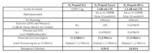 Damit wird mobiles Surfen im In- und EU-Ausland für O2 Prepaid-Kunden noch attraktiver. Statt bislang 750 MB gibt es beim O2 Prepaid Smart künftig 1 GB Highspeed-Datenvolumen für 9,99 Euro monatlich – LTE inklusive. Der O2 Prepaid All-in kostet dann mit 1,5 GB Highspeed-Datenvolumen lediglich 19,99 Euro monatlich. In beiden Tarifen sind wie erwähnt die neuen EU-Roamingvorgaben bereits umgesetzt. Die Kunden surfen, streamen und chatten deshalb mit dem O2 Prepaid Smart oder O2 Prepaid All-in bereits ab März auch in den EU-Ländern völlig unbeschwert.