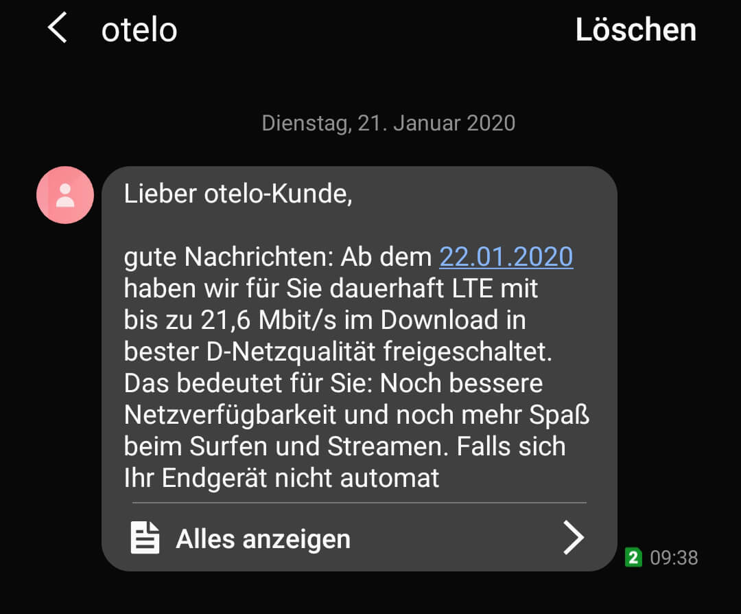 Die maximal nutzbare Datengewschwindigkeit ändert sich allerdings nicht und bleibt weiterhin bei 21,6 Mbit/s im Download. Ob auch Neukunden in den Genuss von LTE bei otelo kommen ist derzeit noch nicht offiziell bestätigt. Auf der Webseite werden jedenfalls noch die Altkonditionen ohne LTE-Netz im Produktinformationsblatt genannt. Allerdings ist stark davon auszugehen, dass LTE allen Nutzern zur Verfügung stehen wird.