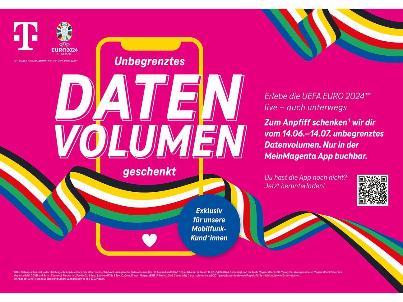Die Deutsche Telekom hat eine besondere Überraschung für Fußballfans zur UEFA EURO 2024™: Ab sofort können alle privaten Mobilfunkkunden sowie viele Geschäftskunden über die MeinMagenta App unbegrenztes Datenvolumen für den gesamten Zeitraum der Europameisterschaft in Deutschland buchen. Dies ermöglicht es den Kunden, die Spiele live von unterwegs zu verfolgen, ohne sich Gedanken über den Datenverbrauch machen zu müssen.