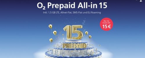 Zum 15jährigen Markengeburtstag dürfen sich in Kürze auch O2 Prepaid-Kunden über ein besonderes Angebot freuen: Vom 6. Juni bis 5. September können alle Neu- und Bestandskunden den O2 Prepaid All-in 15 zum speziellen Geburtstags-Preis buchen. Damit gibt es die flexible Allnet-Flat mit 1,5 GB zum mobilen Surfen bei LTE-Geschwindigkeit zum günstigen Preis von nur 15 Euro für 4 Wochen.… Weiterlesen