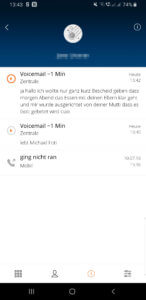 Wir haben die Voicemailfunktion natürlich gleich einmal ausprobiert. Ist der Angerufene nicht erreichbar oder drückt dieser den Anrufer weg, spielt Satellite eine Standardansage ab und bietet das Hinterlassen einer Nachricht an. Macht der Anrufer davon Gebrauch, wird der Sprachschnipsel aufgezeichnet und steht wenige Sekunden danach schon in der Inbox zum Abspielen bereit. Eine raffinierte Besonderheit ist dabei eine automatische Spracherkennung. Der aufgesprochene Text wird aufbereitet und zusätzlich als Text angezeigt. So kann man sich auch das Abrufen der Sprachnachricht ersparen. Allerdings: Im Test funktionierte diese Spracherkennung noch nicht ganz so zuverlässig und produzierte einen Text, der uns schmunzeln lies…